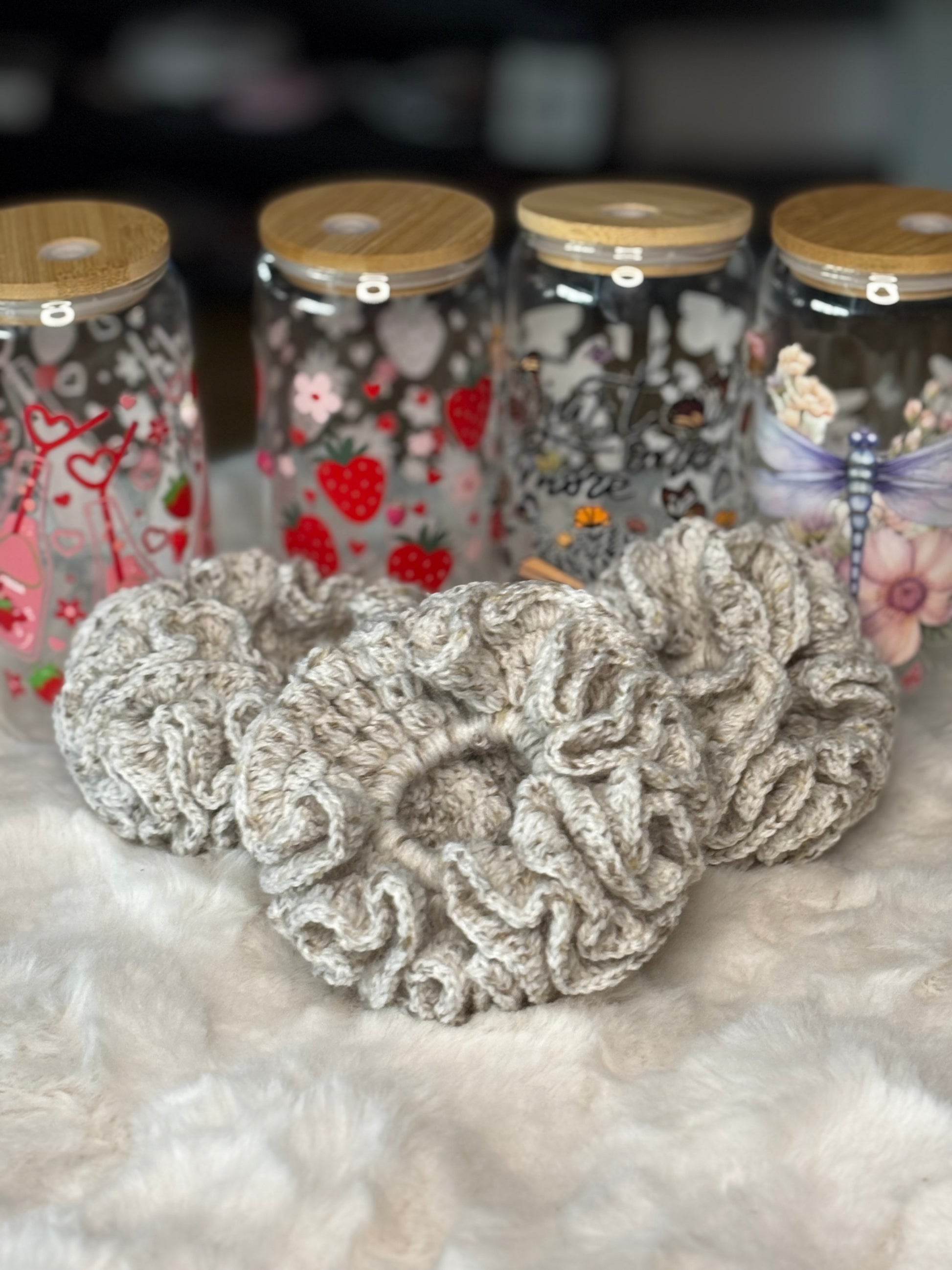 These adorable accessories are crafted with love and care, featuring ultra-soft materials that gently hug your hair. Perfect for adding a touch of elegance to your everyday look or dressing up for a special occasion, our handmade scrunchies are a must-have for anyone who loves a little extra comfort and style in their hair care routine.